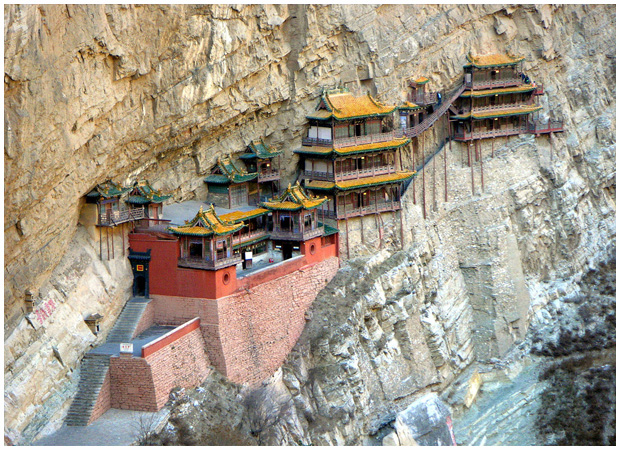 08:30景點:【懸空寺】4A級旅游景區(qū),世界岌岌可危十大建筑,位于恒山金龍峽西側翠屏峰峭壁間,原叫“玄空閣”“玄”取自于中國道教教理“空”則來源于佛教的教理,后改名為“懸空寺”,是因為整座寺院就像懸掛在懸崖上,在漢語中,“懸”與“玄”同音,因此得名。 懸空寺始建于北魏后期(公元491年),距今已有1500多年,是佛、道、儒三教合一的獨特寺廟。“懸空寺”建筑極具特色,以如臨深淵的險峻而著稱,素有“懸空寺,半天高,三根馬尾空中吊”的俚語,以如臨深淵的險峻而著稱。 懸空寺是全國重點文物保護單位,恒山十八景中“第一勝景”。